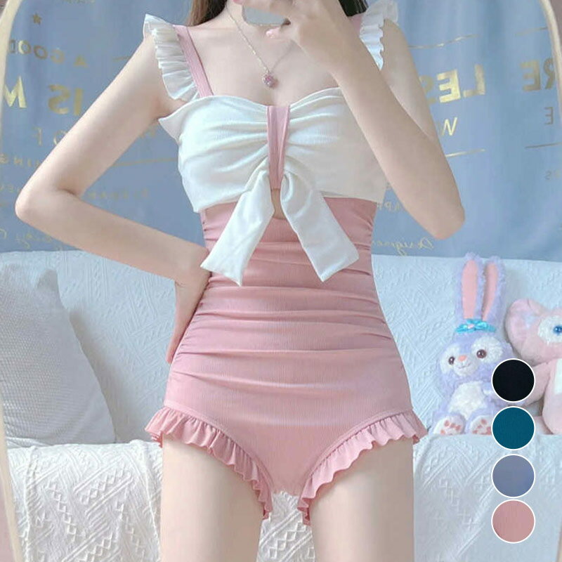 水着 ビキニ ワンピース リボン ブラック ブルー 大きいサイズ 青 黒 ワンピース水着 ギャル レディース水着 セクシー水着 大人 女子 女の子 かわいい セクシー シンプル 小胸 韓国 プール 可愛い 体型カバー 中学生 高校生 貧乳 10代 20代 30代 Tika ガーリー 即日発送