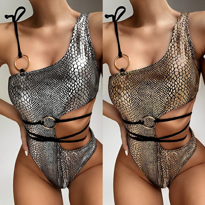 SW066 メタリック モノキニ ブラジリアンビキニ 体型カバー パイソン シルバー ゴールド ワンピース 水着 ハイレグ ブラジリアン ビキニ セクシー ワンピ タンキニ ハイウエスト