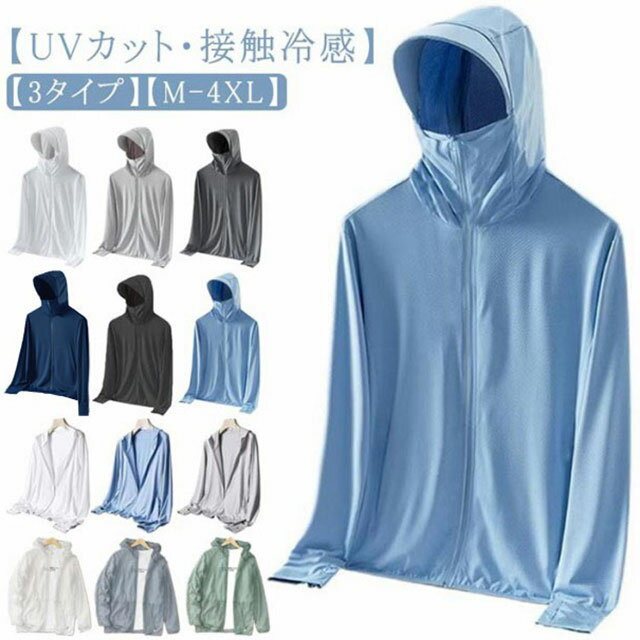 3タイプ! UVパーカー メンズ 長袖 ラッシュガード 夏 薄手 接触冷感 UVカット アウター 指穴 つば 大きいサイズ ジップアップパーカー 吸汗 速乾 冷房対策 紫外線対策 日焼け防止 服 春 夏 送料無料