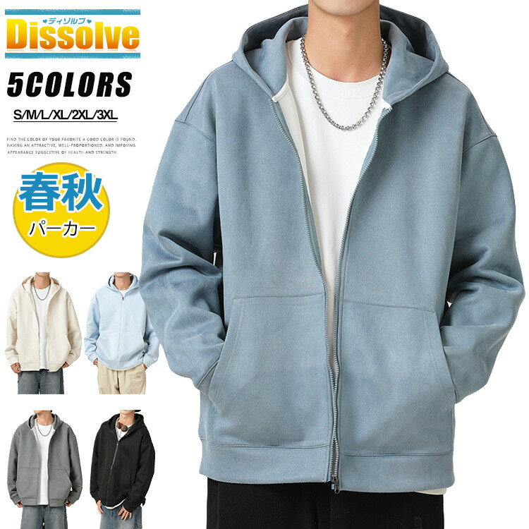 スエードパーカー メンズ 無地 パーカー レディース トップス ジップアップパーカー 長袖パーカー スウェットパーカー ビッグシルエット はおり ジップパーカー フード付き カジュアル スポーツ 春 秋