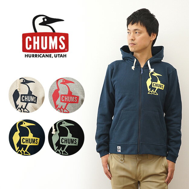 CHUMS(チャムス) ブービー ロゴ ジップ パーカー スウェット フーディ メンズ レディース スエット アウトドア キャンプ アメカジ 大きい サイズ XL 裏起毛 暖かい アメリカ USA コットン 綿 定番 人気 春 秋 冬 コーデ 黒 白 ブラック グレー ネイビー 【CH00-1420】