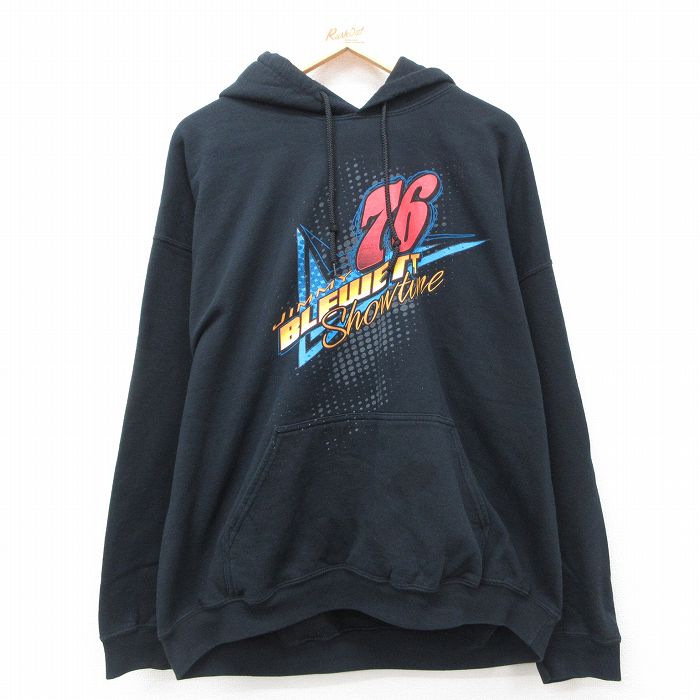 【中古】古着 長袖スウェットパーカー メンズ 00年代 00s レーシングカー ジミーブレウェント 76 大きいサイズ 2L LL ビッグシルエット ゆったり ビッグサイズ オーバーサイズ 黒 ブラック XLサイズ 中古 スエット トレーナー トップス | 春夏 春物 春服 秋冬 5OF