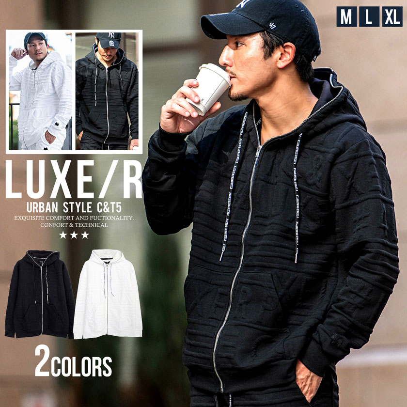 【送料無料】パーカー メンズ おしゃれ ジップアップ ジップパーカー ロゴ ブラック ホワイト 黒 白 M L XL LUXE/R ラグジュ ゴルフ ゴルフウェア ゴルフウエア スポーツ LUXE/R ラグジュ ユニセックス 男性 男 服 秋 冬 秋冬 ファッション メンズファッション【DTK】