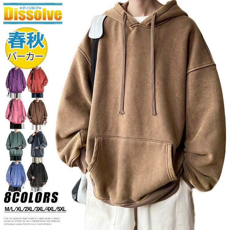 パーカー メンズ ゆったり 無地パーカー トップス 長袖パーカー プルオーバー パーカ スウェットパーカー 春服 秋服 フード付き カジュアル 全8色
