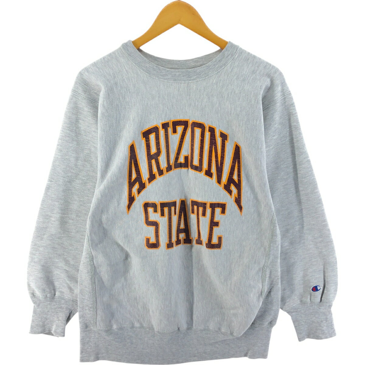 【4/26 マラソン最大半額&ポイント5倍!】 80s USA製 ★ チャンピオン リバースウィーブ 染込み 2段 カレッジ プリント スウェット フード パーカー メンズ L ヴィンテージ 裏起毛 灰| 古着 中古 80's 80年代 ビンテージ アメリカ製 リバース トレーナー プルオーバー スエッ