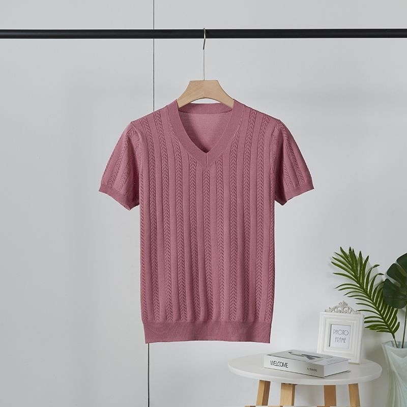 サマーニット メンズ 半袖 Tシャツ Vネック カットソー インナー 細身 春夏 トップス 大きいサイズ