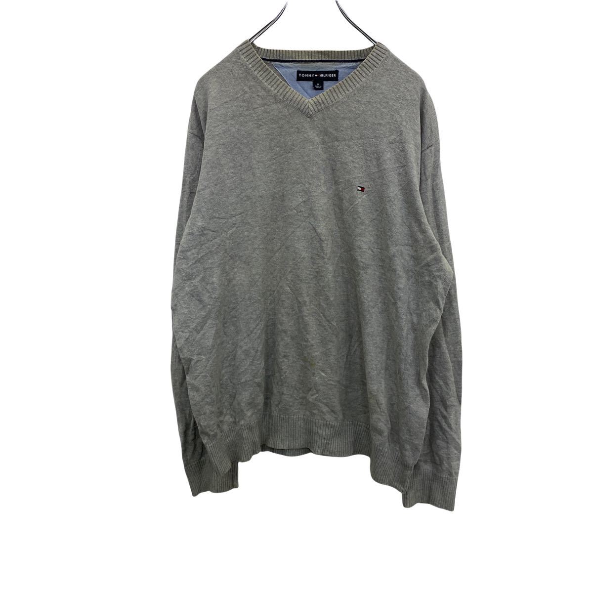 【中古】【古着】 TOMMY HILFIGER Vネックセーター グレー トミーヒルフィガー ニットセーター ロゴ ワンポイント 古着卸 アメリカ仕入 t2201-4584