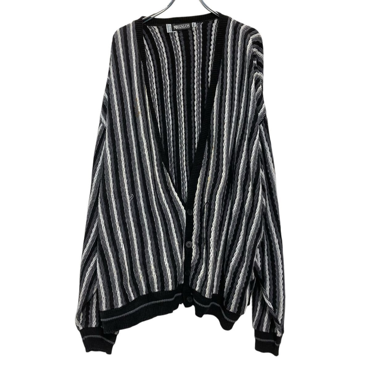 【中古】【古着】 MEGACOS コットンニット セーター 3XLT ブラック グレー ホワイト ストライプ USA製 ビッグサイズ 古着卸 アメリカ仕入 a702-5784