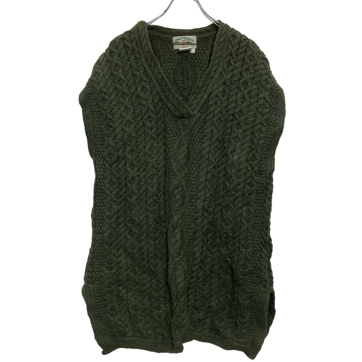 【中古】【古着】 arancrafts ウールニット セーター ベスト L オリーブ アイルランド製 古着卸 アメリカ仕入 a702-5796