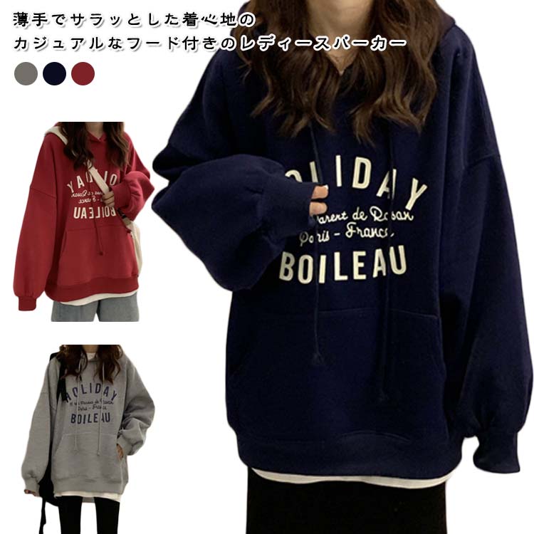 カジュアル パーカー トップス フード付き 春 長袖 スウェット 薄手 トレーナー 夏 秋 プルオーバー ルームウエア シンプル 大人 可愛い tシャツ カットソー フーディー オシャレ レディース