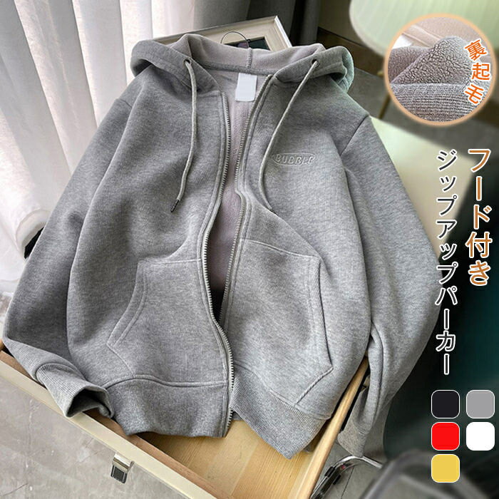 ジップアップパーカー ジップアップ フード付き パーカー 無地 長袖 裏起毛 裏ボア ショート コート オーバーサイズ ショートパーカー 暖かい 大人 ゆったり ゆるシルエット アウター おしゃれ トップス ビッグシルエット カジュアル 秋 冬 春 厚手 20代 30代 40代 50代
