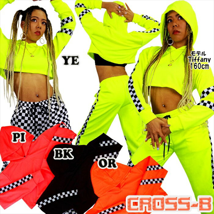 【あす楽/即納】メッシュロゴ付パーカー/ダンス衣装 パーカー HipHop メッシュ トップス ネオン 140 150 160(A0462)CROSS-B