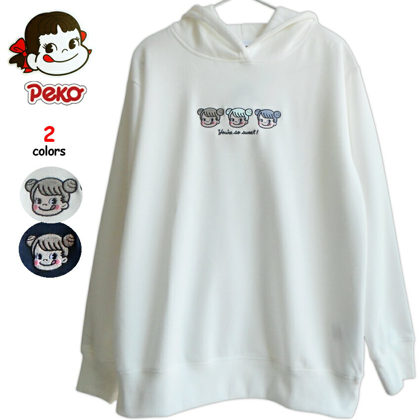 訳あり 送料無料 不二家 ペコちゃん パーカー レディース スウェット 春物 刺繍 大人 おしゃれ ミルキー レトロ 3つ子 おだんごヘア くすみカラー 70年代 80年代 ポップ マニア メンズ ジュニア ペアルック サンリオ パステル ヘアカラー 春 秋 かわいい 懐かし系