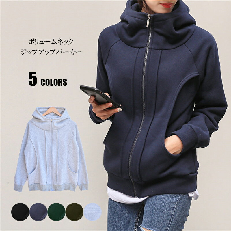 裏起毛ボリュームネックジップアップパーカー レディース ゆったり ランチ会 シルエット 女子会 通勤 通学 おしゃれ 着回し スウェット トップス リブ袖 春 アウター 秋 冬 レディース 送料無料 SLENDER スレンダ k166