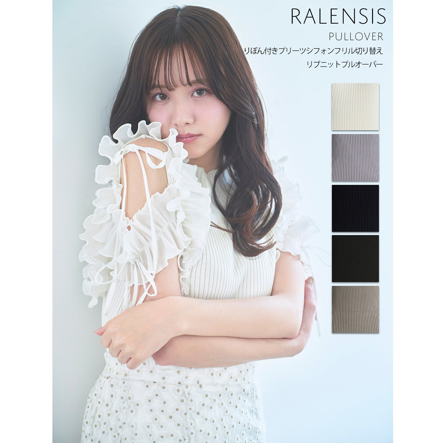 りぼん付きプリーツシフォンフリル切り替えリブニットプルオーバー【ralensis ラレンシス】tocco closet(トッコクローゼット) ※森香澄さん、道重さゆみさんはオフホワイト着用 オフホワイト ラベンダー ネイビー 商品番号:186-182887