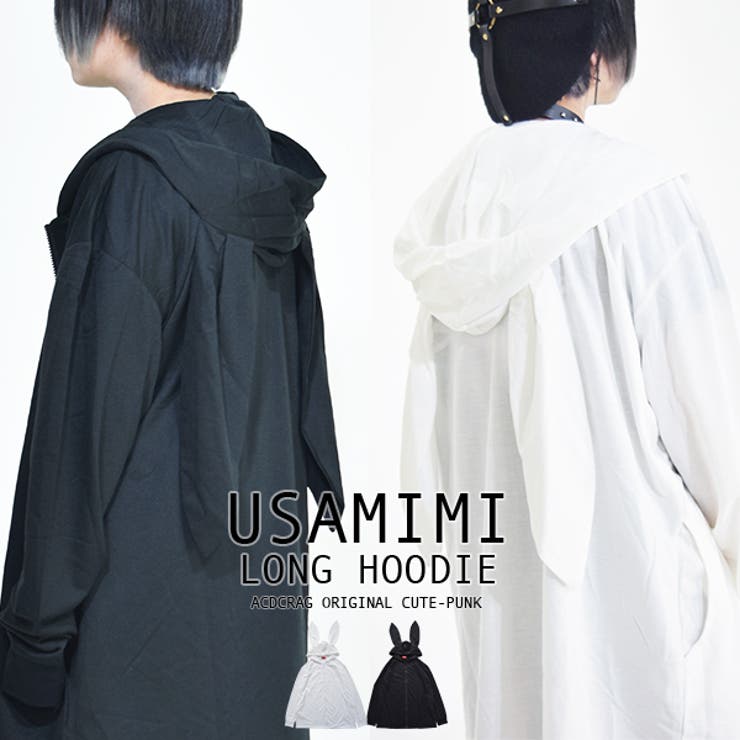 【6/11 1:59まで 10%OFFクーポン】ACDCRAG ウサミミZIPパーカー うさ耳 パーカー 原宿 原宿系 ファッション レディース パンク ロック 病みかわいい 病みかわ 病み ウサ耳 うさぎ ロング ロング丈 大きいサイズ 長袖 メンズ