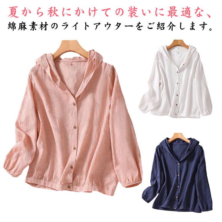 uvカット レディース パーカー アウター フード付き 春 通気性 夏 ゆったり 前開き ブラウス 薄手 長袖 uvパーカー カーディガン ジャケット 羽織り 無地 紫外線対策 冷房対策 体型カバー