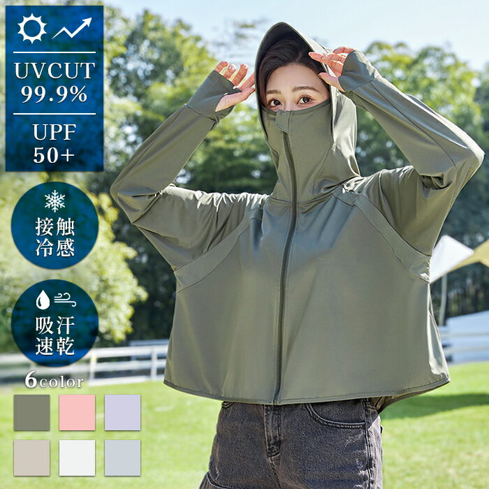 【楽天スーパーSALE半額OFF】送料無料 UPF50+ UVカット UVケアガード ポンチョ パーカー フード 日焼け予防 紫外線対策 レディース 長袖 UVアウター UVパーカー 運転用 自転車 帽子付き フェイスカバー ネックカバー ツバ 指穴つき 接触冷感 速乾 吸水 涼しい