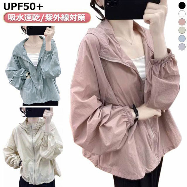マウンテンパーカー レディース 薄手 春 夏 アウター ライトアウター ショート丈 ジャケット ブルゾン きれいめ ジップアップ uvカット uvパーカー おしゃれ 長袖 ゆったり 体型カバー 大きいサイズ ボリューム袖 大人 紫外線対策 冷房対策 シアー 白 ピンク グリーン ブルー