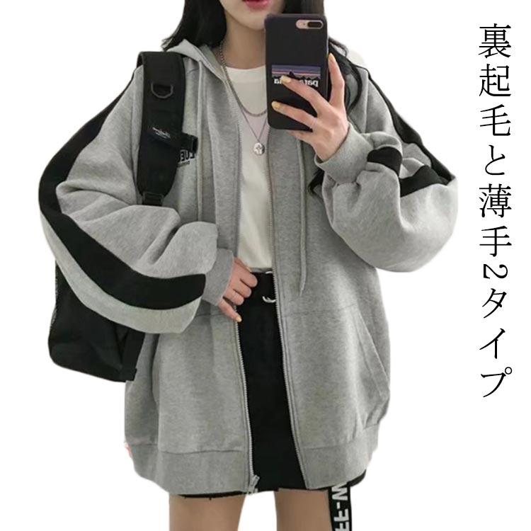 アウター ジップパーカー 長袖 ジップアップ パーカー 裏起毛と薄手2タイプ 防寒 アウター フード付き ゆったり 無地 カジュアル 春秋冬 おしゃれ サイドライン 体型カバー レディース カジュアル
