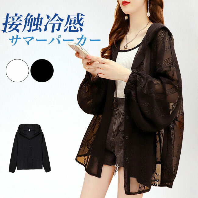 【送料無料】サマーパーカー 透け透け レディース レースパーカー 薄手 接触冷感 パーカー 刺繍 サマーカーディガン オーバーサイズ 夏 透けトップス レースカーディガン ホワイト ブラック カーディガン フード付き ライトアウター リゾート 日焼け対策