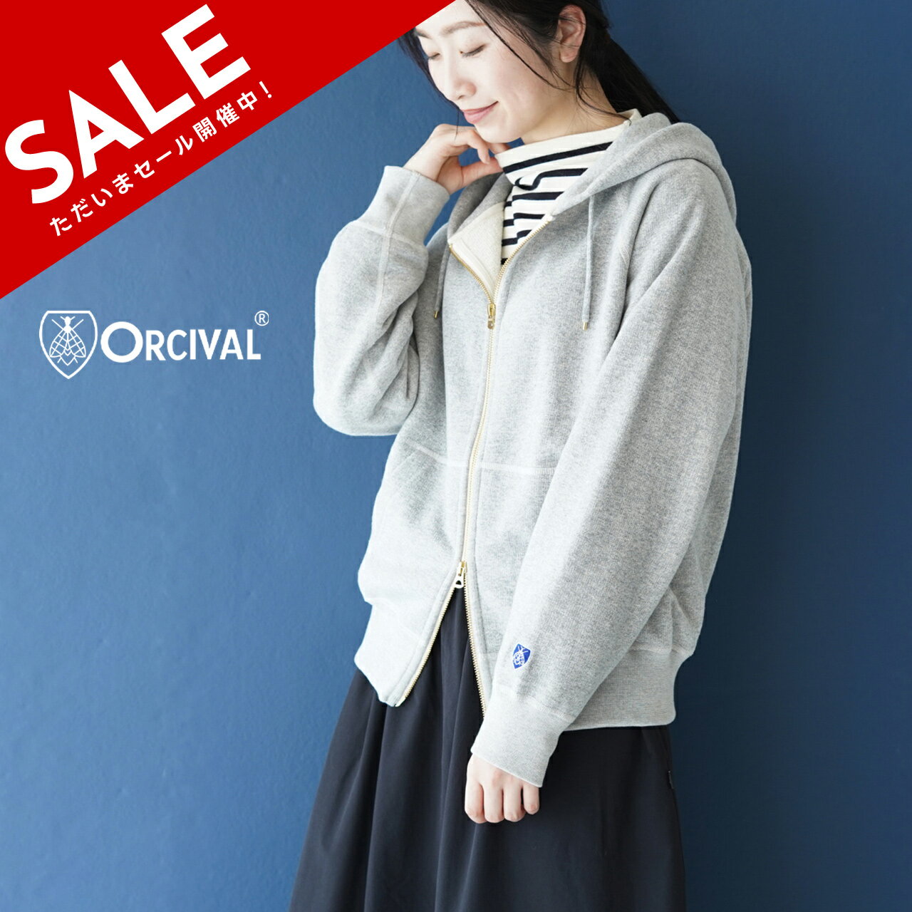 【SALE!30%OFF】オーシバル オーチバル ORCIVAL フレンチテリー ジップアップ フーディー パーカー FRENCH TERRY ZIP HOODIE ホワイト グレー ベージュ レディース メンズ OR-C0153 【送料無料】 cpn15 ps30