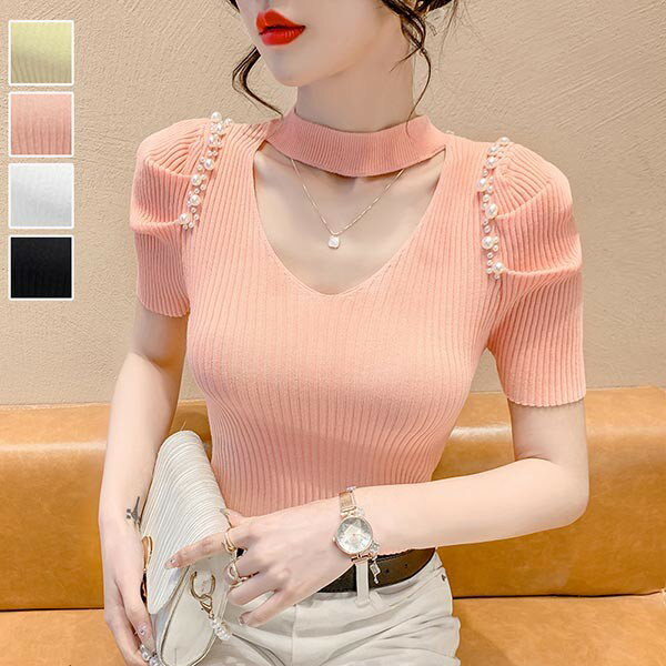 セクシー トップス 半袖 胸元 セクシートップス フェミニン レディース 女性 着痩せ レディースファッション 無地 ブラウス ビスチェ ブラック ホワイト ピンク イエロー dd122g5g5x1