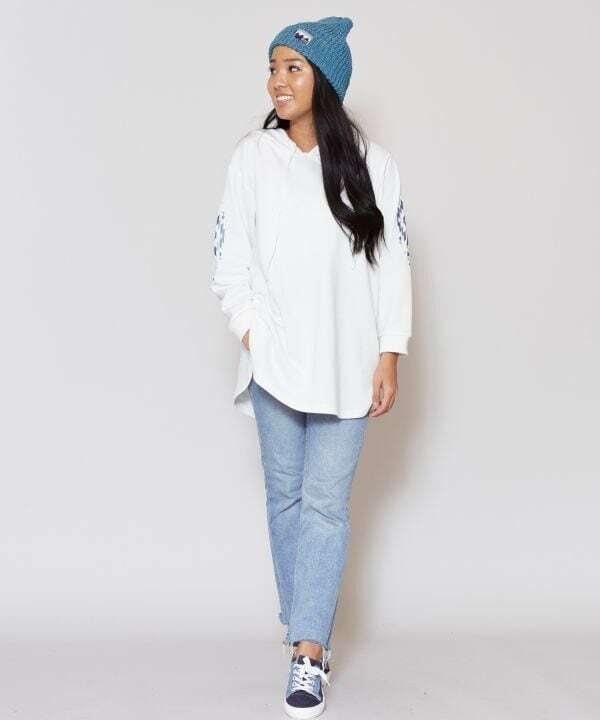 ピリアロハフードTOP【ホワイト】フード付きパーカースウェットデニムと抜群シンプルコーデレディースファッションオルテガ刺繍ピリアロフード送料無料