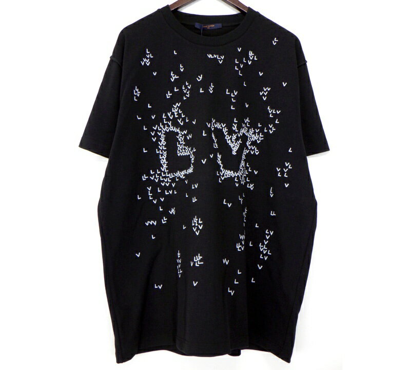 ルイヴィトン LOUIS VUITTON 22AW 【 RM222M NPL HNY14W 】 ロゴ 刺繍 LV スプレッド エンブロイダリー 半袖 Tシャツ ブラック サイズXL h4582【中古】