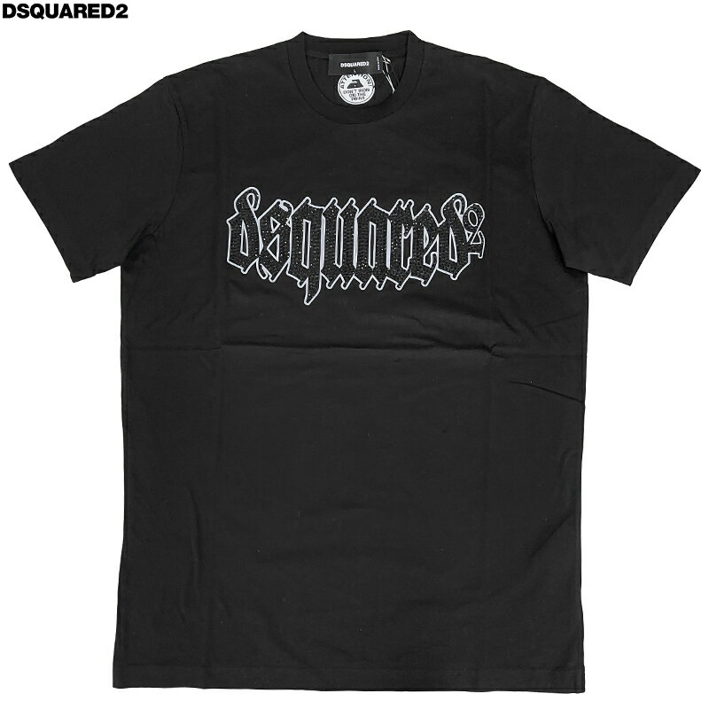 DSQUARED2 ディースクエアード 新品 半袖 Tシャツ S74GD1222 黒 L ブラックラインストーン イタリア製 丸首 クルーネック 並行輸入品 クリックポストで送料無料