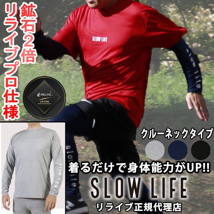 リライブ正規代理店 握力10kgアップSLOWLIFE スローライフ リライブ加工 シャツ リライブ 半袖 クルーネック スポーツウェア ルームウェア 介護 アスリート ゴルフ スポーツ コットン 丸首 ストレッチ 吸水 速乾 伸縮 腰痛 肩こり
