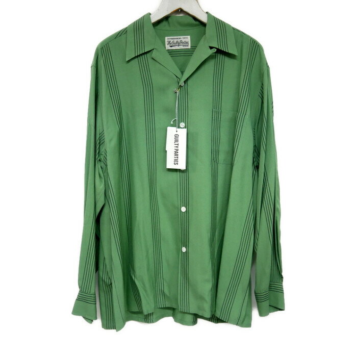 WACKO MARIA ワコマリア 国内正規 24SS STRIPED OPEN COLLAR SHIRT L/S ストライプオープンカラーシャツ レーヨンシャツ 24SSE-WMS-OC01 GREEN グリーン L【中古】