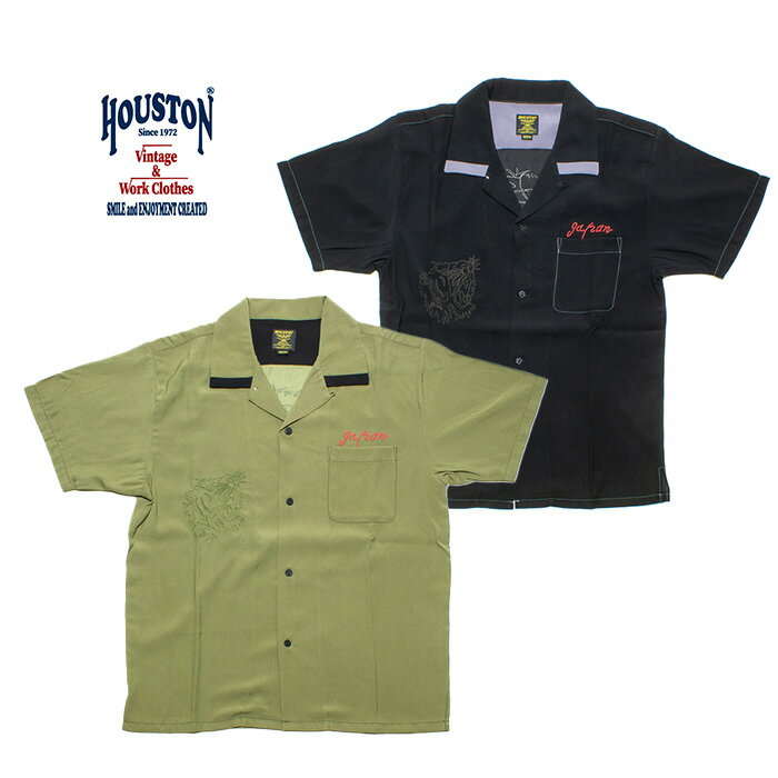 HOUSTON 41241 SOUVENIR TIGER SHIRT【ヒューストン 41241 スーベニア タイガー シャツ】メンズ レディース ミリタリー アウトドア カジュアル Tシャツ お土産 ボーリングシャツ 刺繍 虎柄