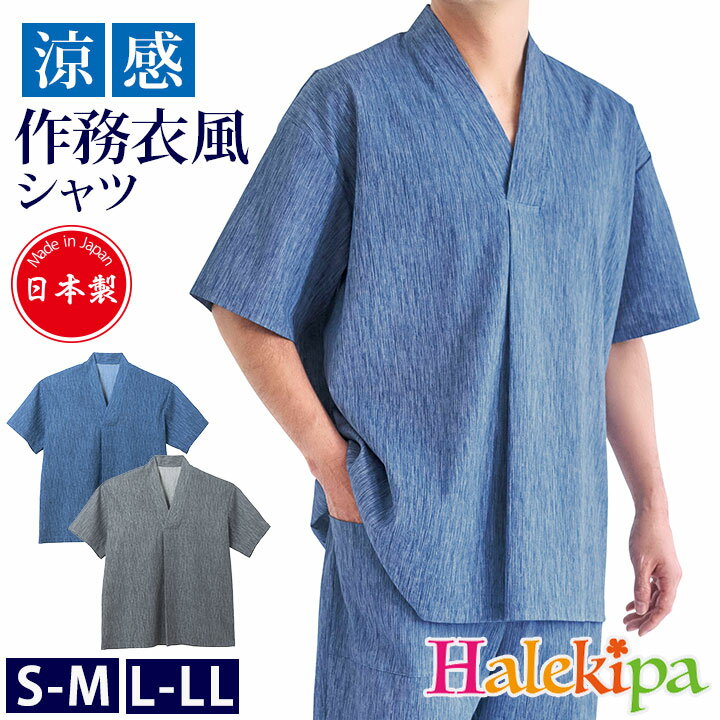 高島ちぢみ涼感作務衣風シャツ S-M/L-LL [Z3256]高島ちぢみ シャツ メンズ 作務衣 男性 かぶり プルオーバー 高島縮 日本製 綿100% セットアップ 涼感 夏 暑さ対策 普段着 部屋着 作業着 ルームウェア