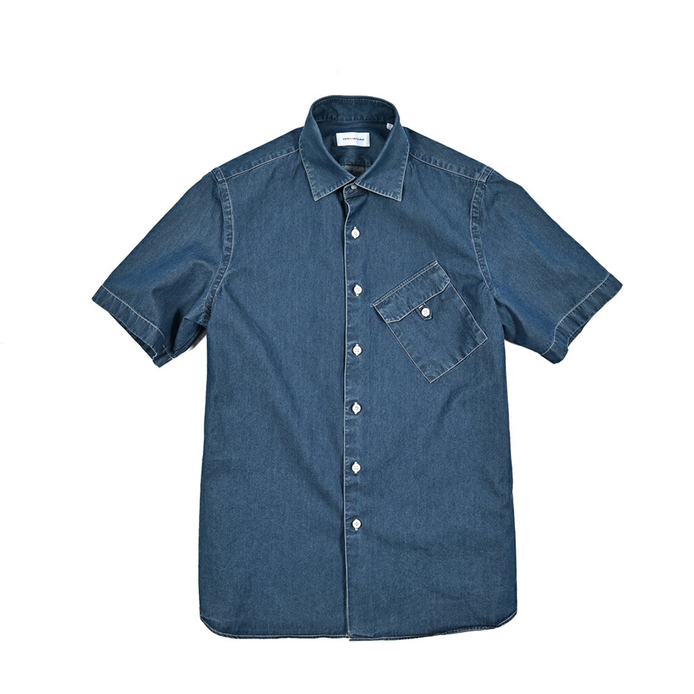 【半額以下】 タリアトーレ TAGLIATORE 【2025年 春夏新作】 BIARRITZ デニムシャツ カジュアルシャツ 半袖 セミワイドカラー 春夏 メンズ コットン 100% インディゴブルー イタリア ブランド MADE IN ITALY