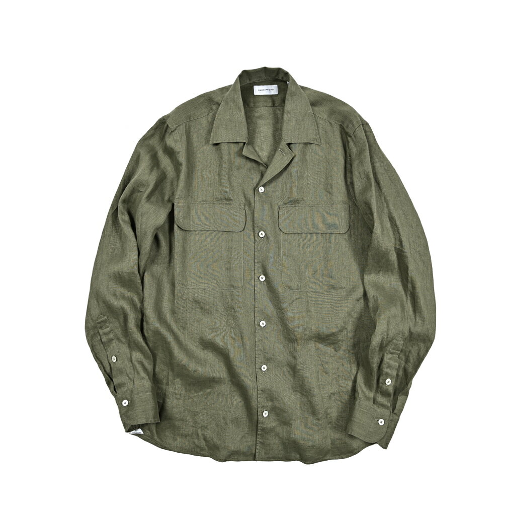 【半額以下】 タリアトーレ TAGLIATORE 【2025年 春夏新作】 ROWAN 開襟シャツ カジュアルシャツ オープンカラー 長袖 春夏 メンズ リネン 100% ミリタリーグリーン イタリア ブランド MADE IN ITALY