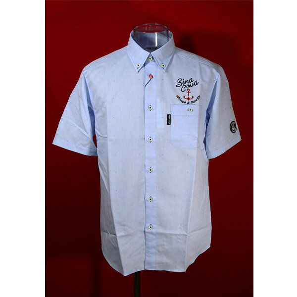 ★シナコバ【*001*】【*BIG SALE*】40%OFF・春夏半袖ボタンダウンシャツ<M・Lサイズ>ブルー・刺し子-kw567・kw568