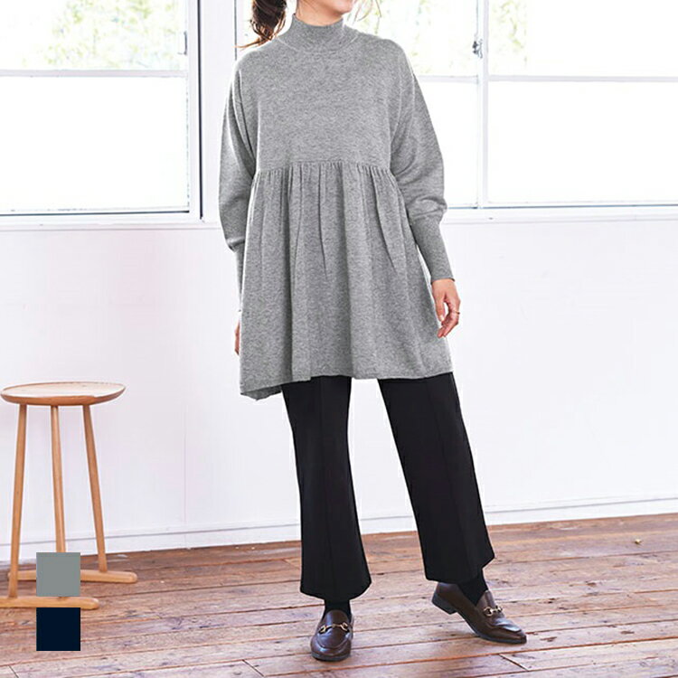 【KEYUCA公式店】ケユカ ウエストギャザーニットチュニック [レディース トップス セーター ハイネック ペプラム ウォッシャブル 洗える シンプル 通販]