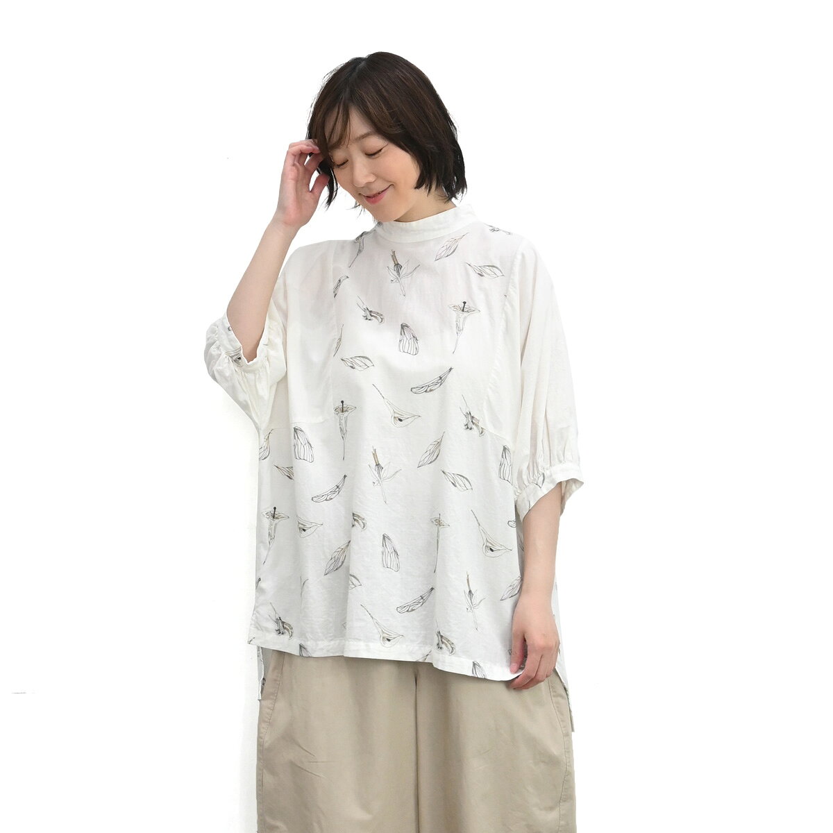 タックブラウス クリセタツイル プリント ブラウス M Lサイズ きれい おしゃれ 日本製 40代 50代 60代 上質 高級 上品 プレゼント
