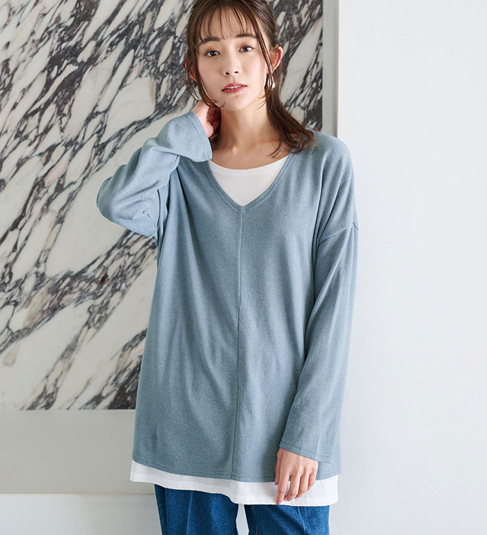 \開店15周年記念15%OFFクーポン/ チュニック S M L LL 3L 4L 5L レイヤード風ニットソーチュニック(S〜5L) ベルーナ ラナン Ranan 30代 40代 50代 秋冬 秋冬服
