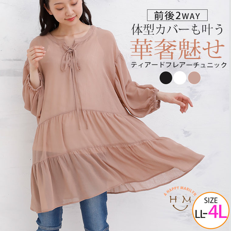 【期間限定クーポン配布】 大きいサイズ レディース トップス | 楊柳 シフォン レースアップ 2WAY チュニック _ シャツ ブラウス LL 3L 4L 夏物 夏服 夏用 ぽっちゃり ゆったり かわいい おしゃれ カジュアル プラスサイズ [TG35323LL-1/TG35323LL-2/TG35323LL-3]