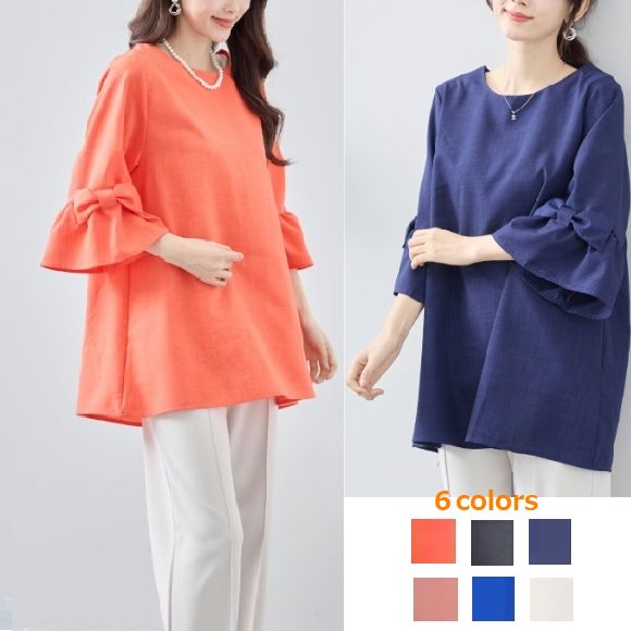 チュニック 袖リボン付き ブラウス C01-422 フリー M L TRUBE 大人可愛い ミセス fmsd キレイメ アパレル 女性 デイリーファッション 普段着 おしゃれ着 レディース 30代 40代 50代 60代 洋服 婦人服 可愛い服