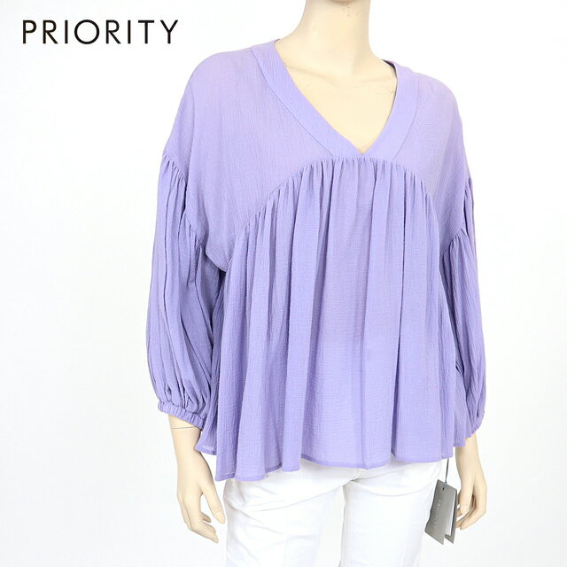 プライオリティ(PRIORITY)レディース 七分袖チュニック パープル系 Vネック (サイズ/38)*ma0032