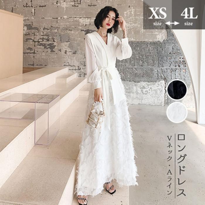 スーツ風 ピアノ発表会 ドレス パーティードレス 演奏会 ドレス ブラック 黒 ホワイト 白 ロングドレス Vネック Aライン 長袖 袖あり 結婚式 母親 フォーマル 小さいサイズ 大きいサイズ 女子会 da254x1x1x1