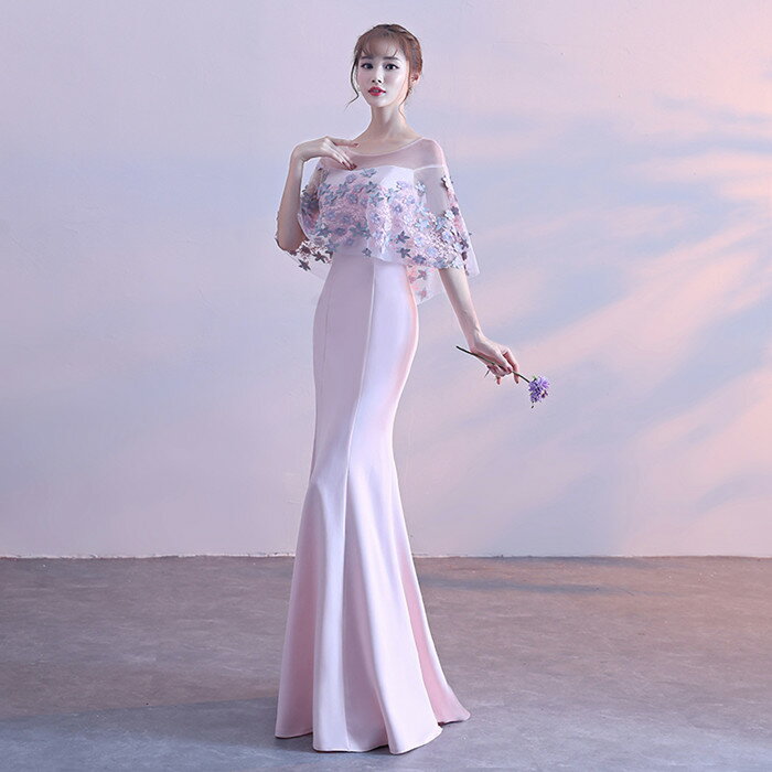 カラードレス【着後レビュー特典】ショール マーメイドライン 透け感 花刺繍 ドレス ワンピース ミルキーピンク ブルー 韓国 二次会 ウェディング ドレス パーティードレス 演奏会 ピアノ発表会 舞台衣装 ステージ衣装 お色直し