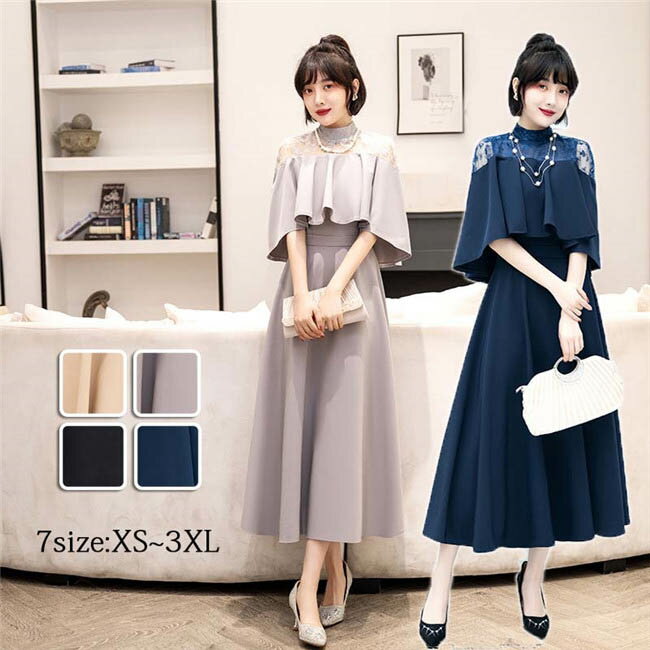 【49%OFFで7990円】パーティードレス 大きいサイズ ロング 結婚式 袖あり ワンピース ドレス ロング丈 フォーマルワンピース 他と被らない 半袖 お呼ばれ 体型カバー パーティドレス レディース 二次会 成人式 同窓会 袖付き フレア