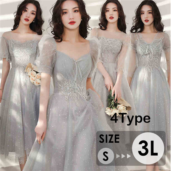 ★500円OFFクーポン配布中★ミモレドレス ドレス 大人 ピアノ 発表会 グレー ミモレ丈 パーティードレス フォーマルワンピース 体型カバー 結婚式 成人式 同窓会 演奏会 二次会 忘年会 上品 お呼ばれ 20代 30代 40代 大人可愛い S M L 2L 3L