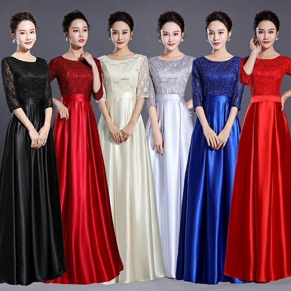 ★500円OFFクーポン配布中★【サイズ有S/M/L/XL/2XL/3XL/4XL/5XL】演奏会用ドレス 袖付き ロングドレス 母親 結婚式 パーティードレス 演奏会 袖付き ワンピース ドレス パーティードレス 大きいサイズ 黒 レッド ブラック ワインレッド ブルーda687s1s1jc