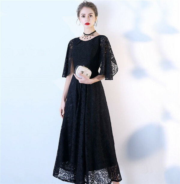 【選べるドレス丈】ドレス 大人 ピアノ 発表会 演奏会 結婚式 母親 合唱ドレス パーティードレス 黒 ブラック ワンピース お呼ばれ フォーマル 小さいサイズ 五分袖 韓国 レース フェミニン 大きいサイズ 袖あり エレガント 合唱 音楽会 ショート丈 ミモレ丈 ロング丈