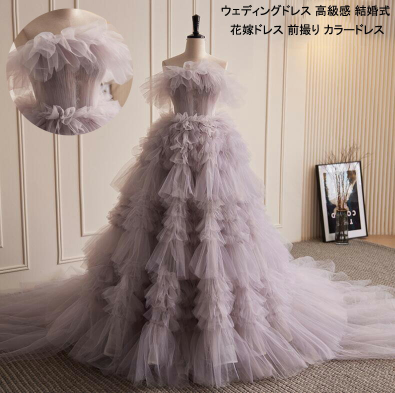 【 送料無料】カラードレス 結婚式ドレス 演奏会 お姫様 ウェディングドレス 多重チュール 高級感 可愛い 花嫁ドレス 前撮りドレス 後撮り フォトウェディング撮影 オフショルダー パーティードレス ロング きれいめ 二次会ドレス 披露宴 ピアノ発表会 ワンピース エレガント
